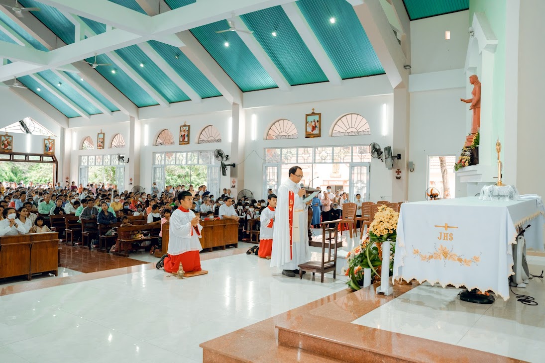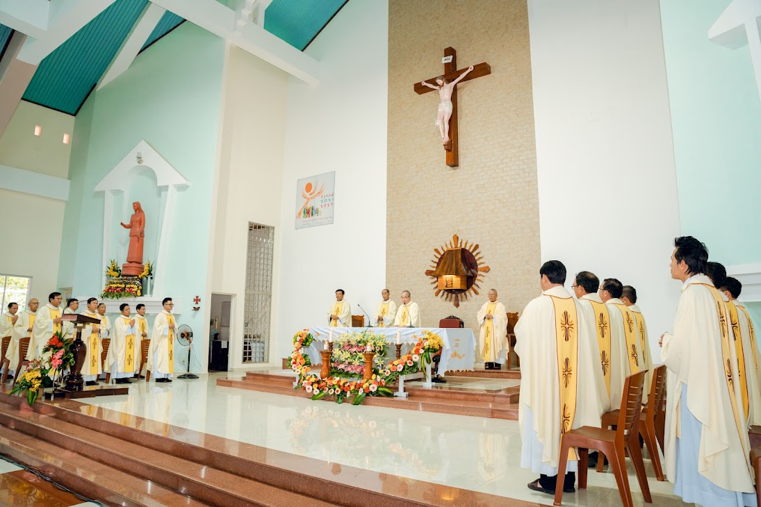 Sau Giờ Chầu Thánh Thể và Ban Bí tích Hòa giải, thánh lễ đồng tế do Cha Tổng Đại Diện Giáo phận Nha Trang – Gioakim Phạm Công Văn chủ sự, cùng với Linh mục Đoàn đồng tế là Cha Hạt Trưởng Giáo hạt Diên Khánh – Giuse Võ Quý và các Cha trong Giáo hạt.