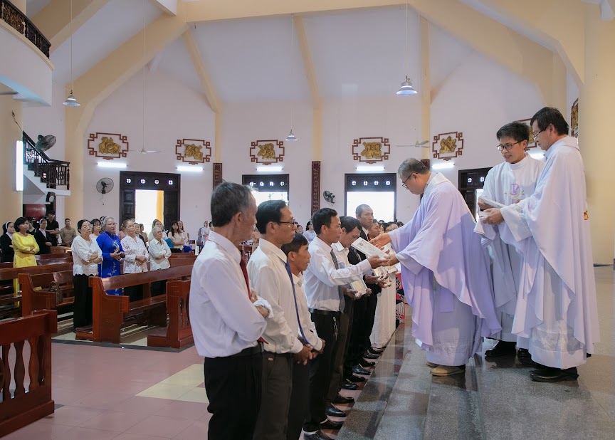 Hòa chung niềm vui với Giáo hội mừng kính Lễ Trái tim Vô Nhiễm Đức Mẹ, là ngày Bổn mạng của Giáo xứ Khiết Tâm, cha Đôminicô, hạt trưởng hạt Nha Trang, đã dành thời gian quý báu của mình đến chủ tế Lễ Bổn mạng của Giáo xứ vào lúc 09g30 ngày 28.06.2025 và đã trao chứng thư cho các thành viên HĐMVGX: