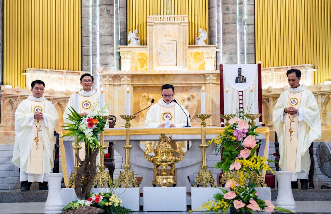 Thánh lễ Đồng tế với sự hiện diện của Cha Hạt Trưởng Nha Trang, kiêm Quản xứ Gx Chánh Toà, Cha Phêrô Nguyễn Duy Tân - Phó Quản xứ Gx. Chánh Tòa, Cha Tôma Nguyễn Thành Nguyên - Quản xứ Gx. Khiết Tâm (Cựu Phó Quản xứ Gx. Chánh Tòa), Cha Augustio Nguyễn Văn Dụ (Tổng Giáo phận Huế), Cha Giuse Nguyễn Văn Quyền và Cha F.X. Bùi Nguyên Duy là những Người con của giáo xứ, Cha Giuse Bùi Quang Minh, Giám Học khối Triết học, Học Viện Thánh Giuse Dòng Tên và Quý Cha Đồng môn của Cha Phêrô Nguyễn Phúc Hoàng Dũng: Cha Cornelius Đinh Chí Thiện, Cha Đaminh Lê Văn Luân, Cha Giuse Lê Đắc Thắng thuộc Dòng Tên S.J. Việt Nam.