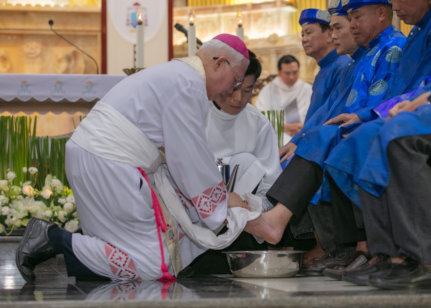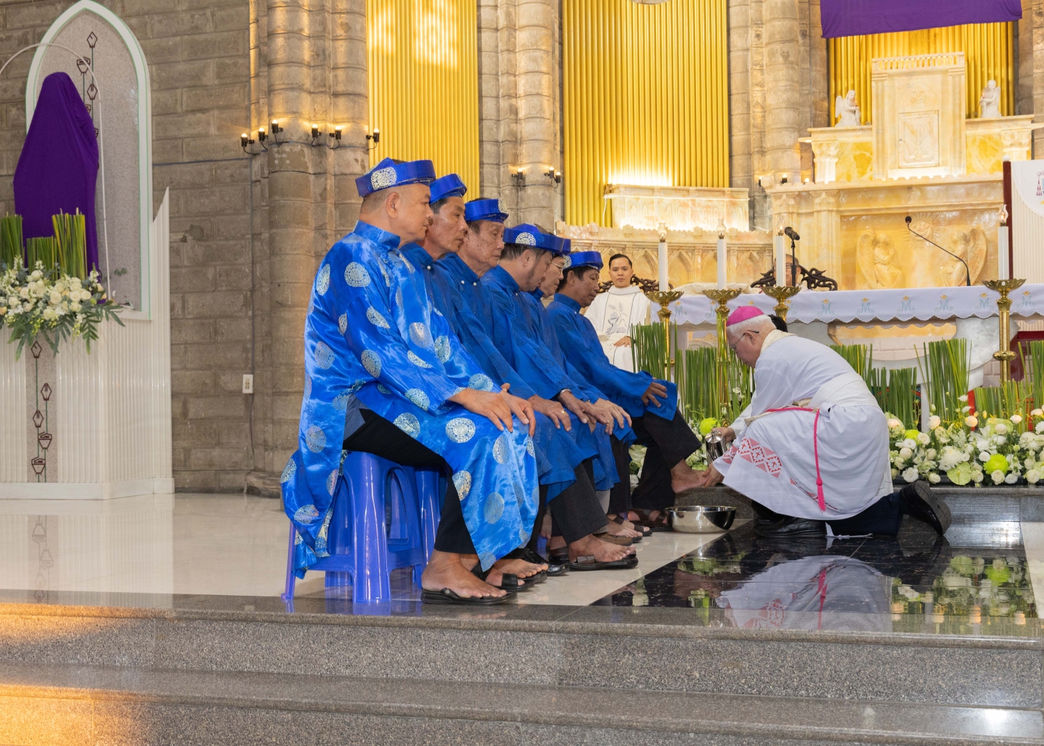 Điểm nhấn đầy xúc động của Thánh lễ chính là nghi thức rửa chân. Hình ảnh vị chủ chăn cúi mình rửa chân cho các tín hữu không chỉ tái hiện lại cử chỉ yêu thương của Chúa Giêsu xưa, mà còn là lời mời gọi mỗi người sống tinh thần khiêm nhường, phục vụ và yêu thương nhau cách chân thành.