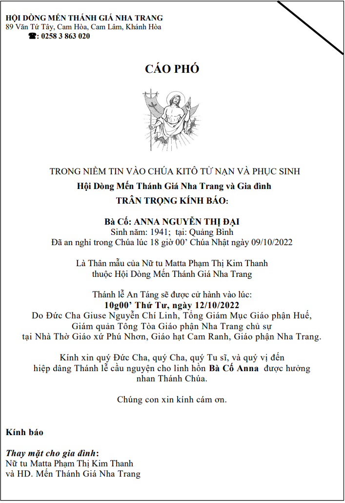 Thông báo và Thư mời Thánh lễ Tạ ơn ngày 31-08-2022