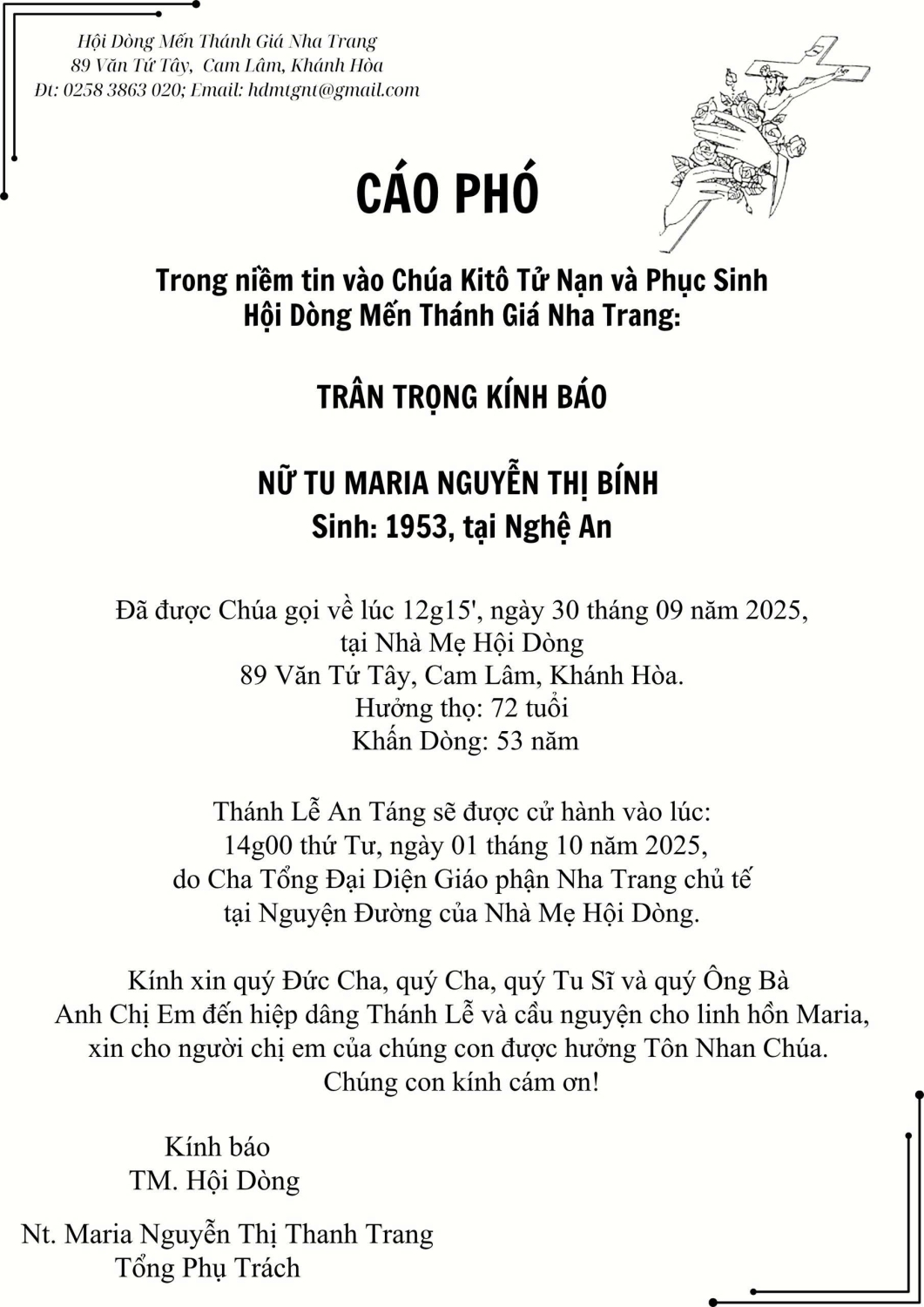 Bà cố Maria Madalena - thân mẫu Nữ tu Têrexa Phong - MTG Huế
