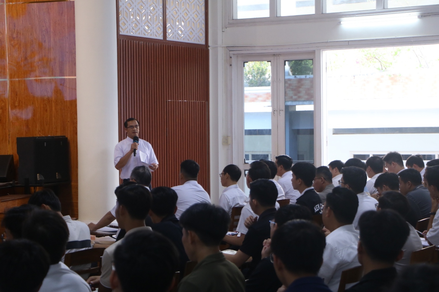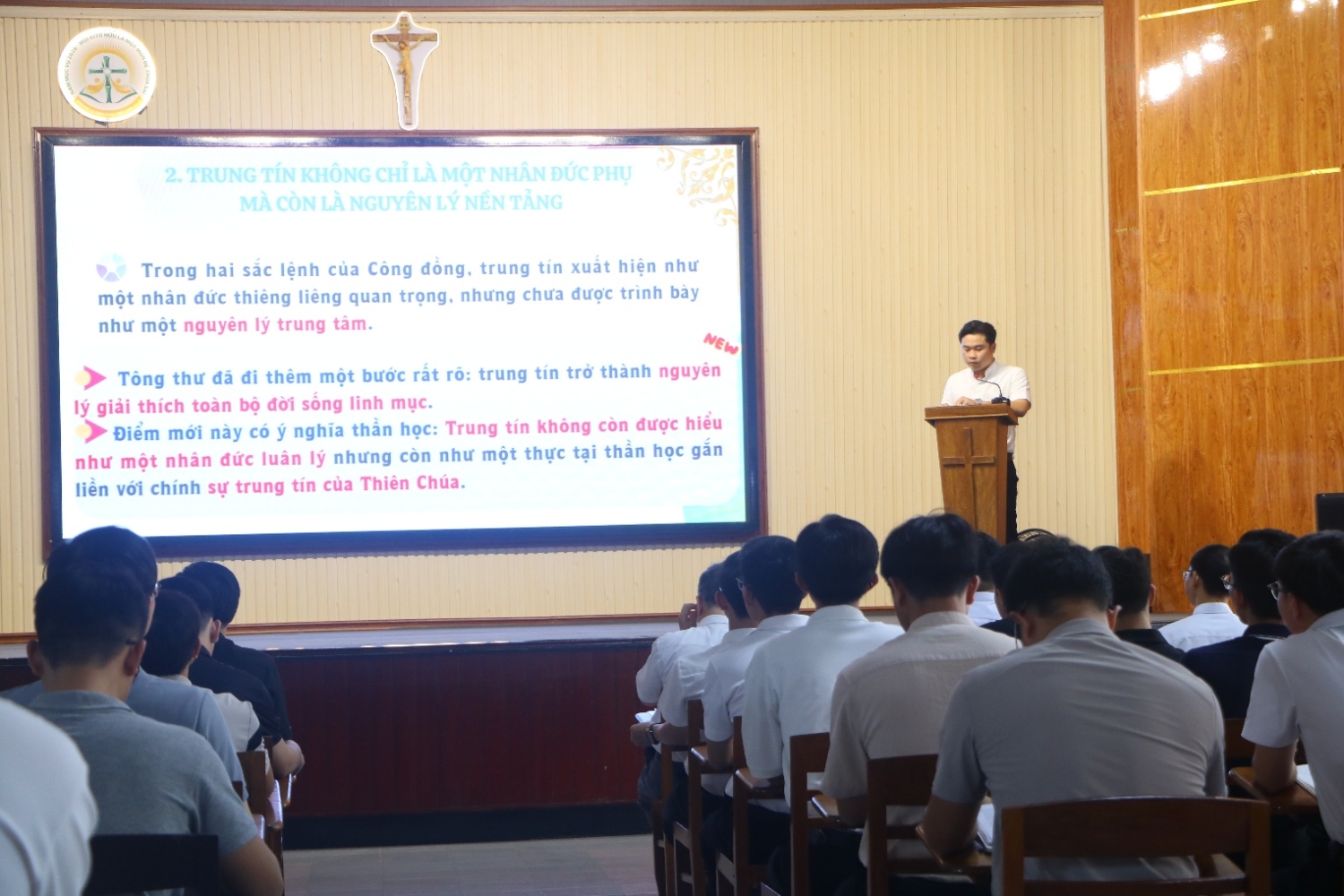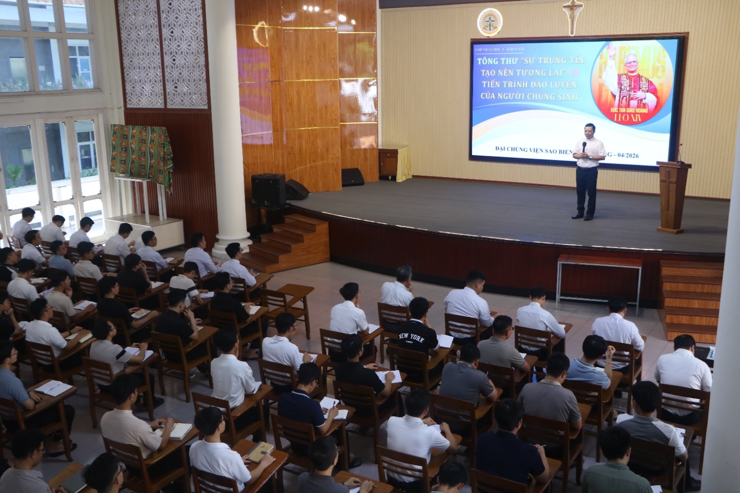 Vào lúc 14g00 ngày 17/04/2026, quý Thầy lớp Thần học IV (Khoá XIX) của Đại Chủng Viện Sao Biển Nha Trang cùng với Cha Đồng hành Sylvester đã trình bày chuyên đề với chủ đề: “Tông thư ‘Sự trung tín tạo nên tương lai’ của Đức Thánh Cha Lêô XIV và tiến trình đào luyện của người chủng sinh”. Chuyên đề nhằm giới thiệu Tông thư của Đức Thánh Cha Lêô; đồng thời gợi mở những định hướng cụ thể cho hành trình đào luyện của người chủng sinh trong bối cảnh hiện nay.