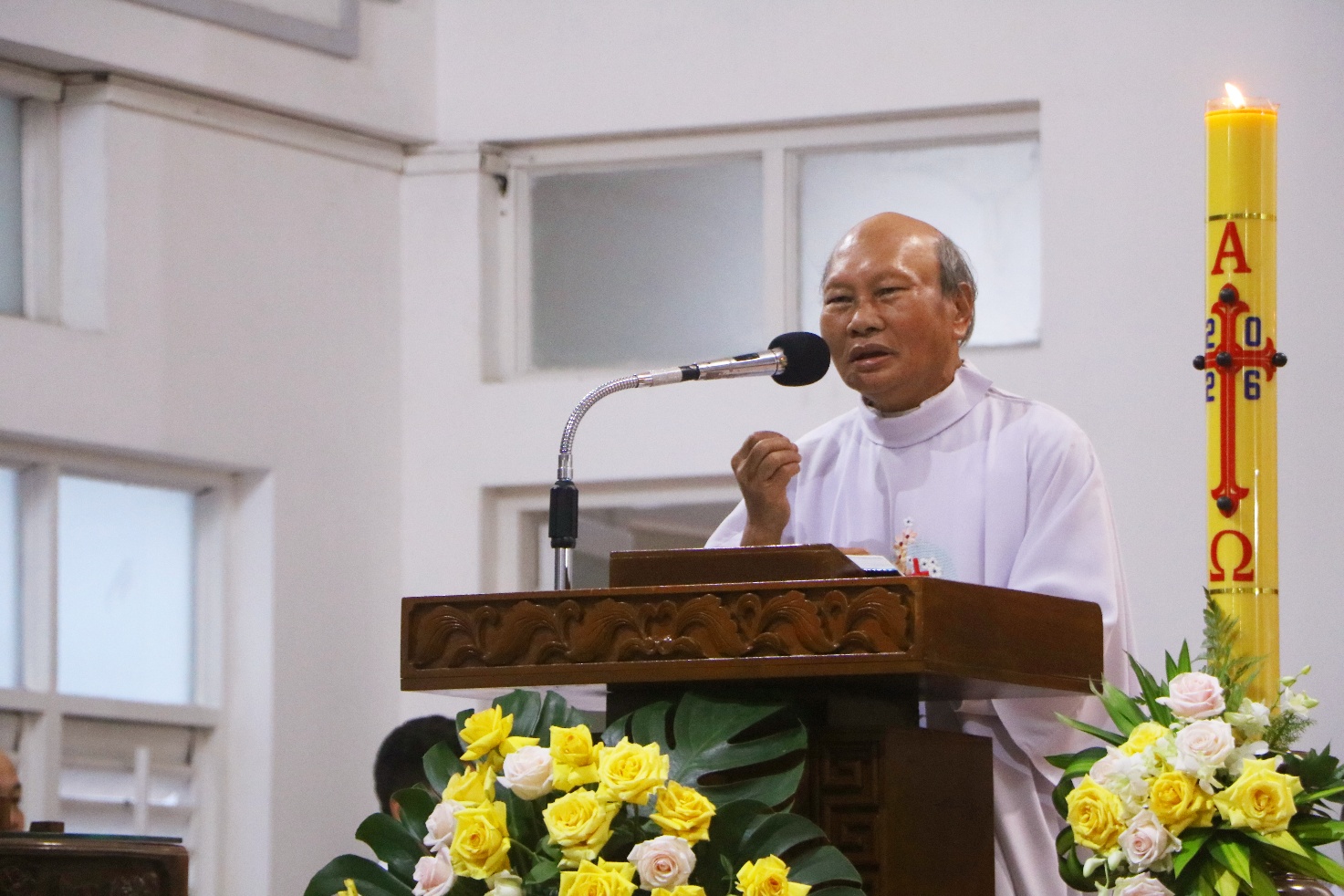 Trong bài giảng, Cha giáo Anrê đã thân tình chia sẻ với quý Tân Linh mục và cộng đoàn về chủ đề Thánh Thể: Ngài nhấn mạnh rằng chính Thánh Thể là điều làm cho chúng ta được nên đồng hình đồng dạng với Đức Kitô. Cha cũng mời gọi các tân Linh mục luôn biết trở về với “ngôi trường” mang tên Bí tích Thánh Thể, ngôi trường mà các Cha sẽ không bao giờ tốt nghiệp. Bởi lẽ, Thánh Thể không chỉ là mầu nhiệm để cử hành, mà còn là chương trình sống mỗi ngày, giúp các Cha ngày càng trở nên những con người thuộc về Thánh Thể.