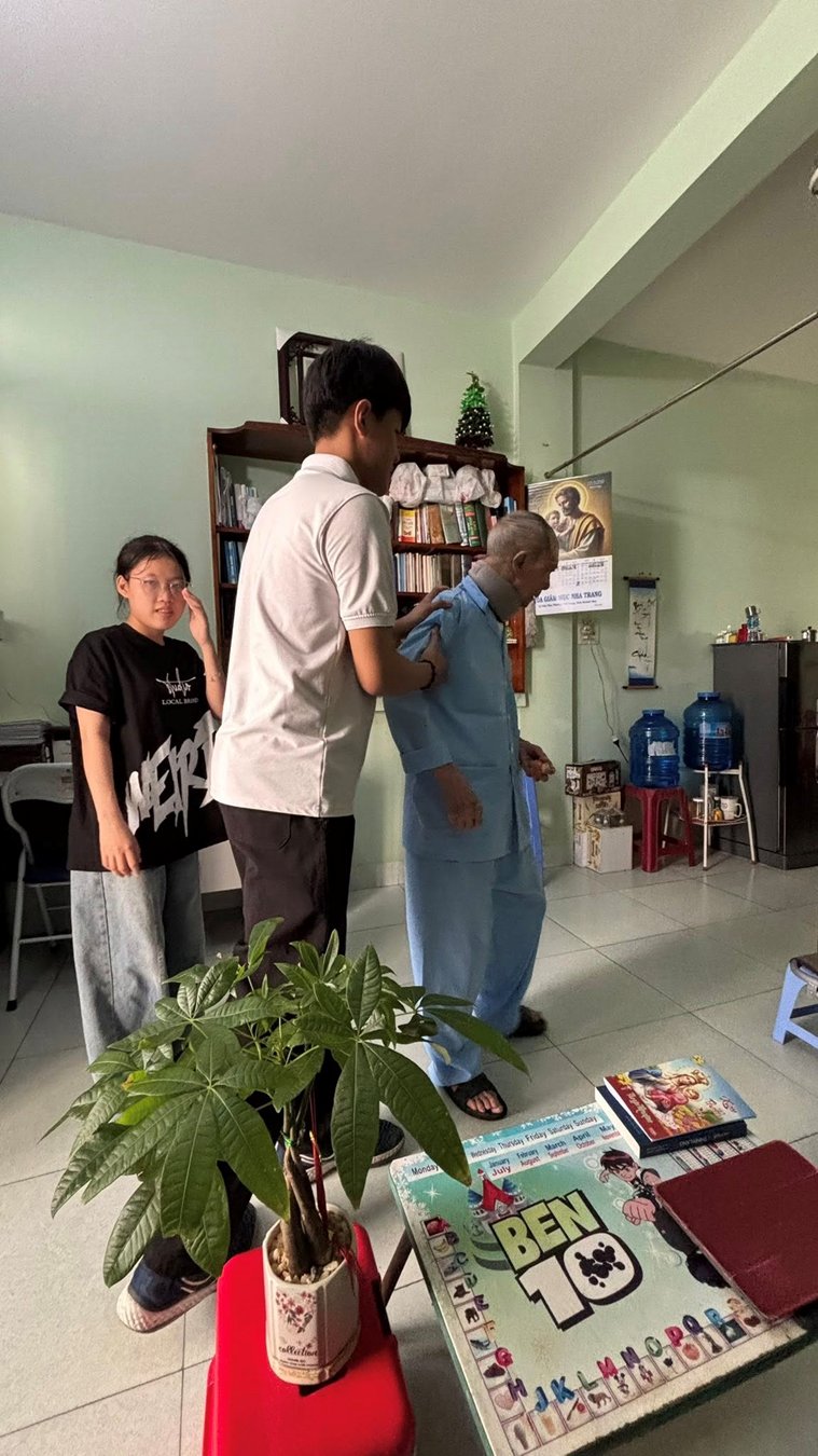 Điểm đến thứ 2 là bệnh viện Phục hồi chức năng tại Hòn Chồng, với những phần quà nhỏ được chuẩn bị để các sinh viên gởi trao yêu thương dịp mừng Chúa Phục Sinh. Quà được trích từ quỹ của nhóm nhờ việc gây quỹ bao lì xì dịp Tết Nguyên Đán và nến đêm lễ Vọng Phục Sinh, trong đó có sự yêu thương và nâng đỡ của quý Cha quản xứ các giáo xứ trong giáo hạt Nha Trang và Diên Khánh.